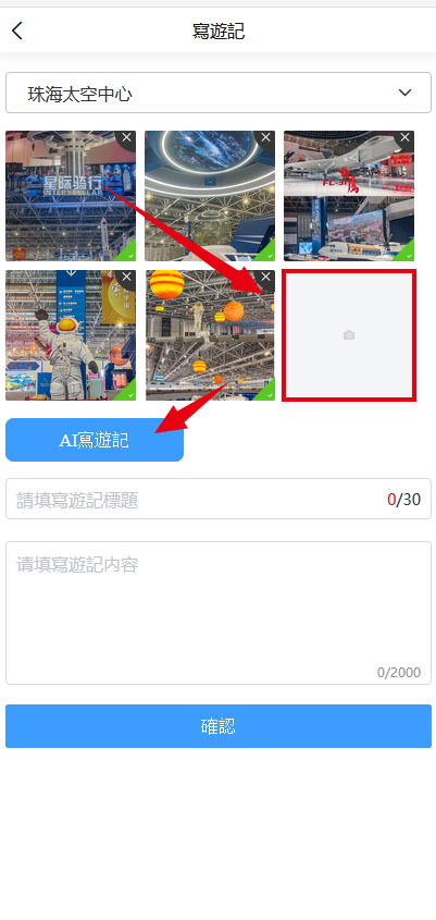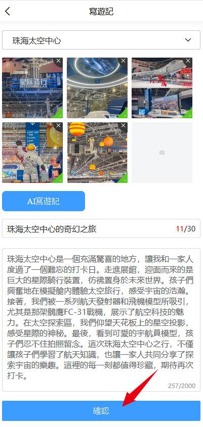 遊客上傳景點照片與自定義標題後,AI自動完成: