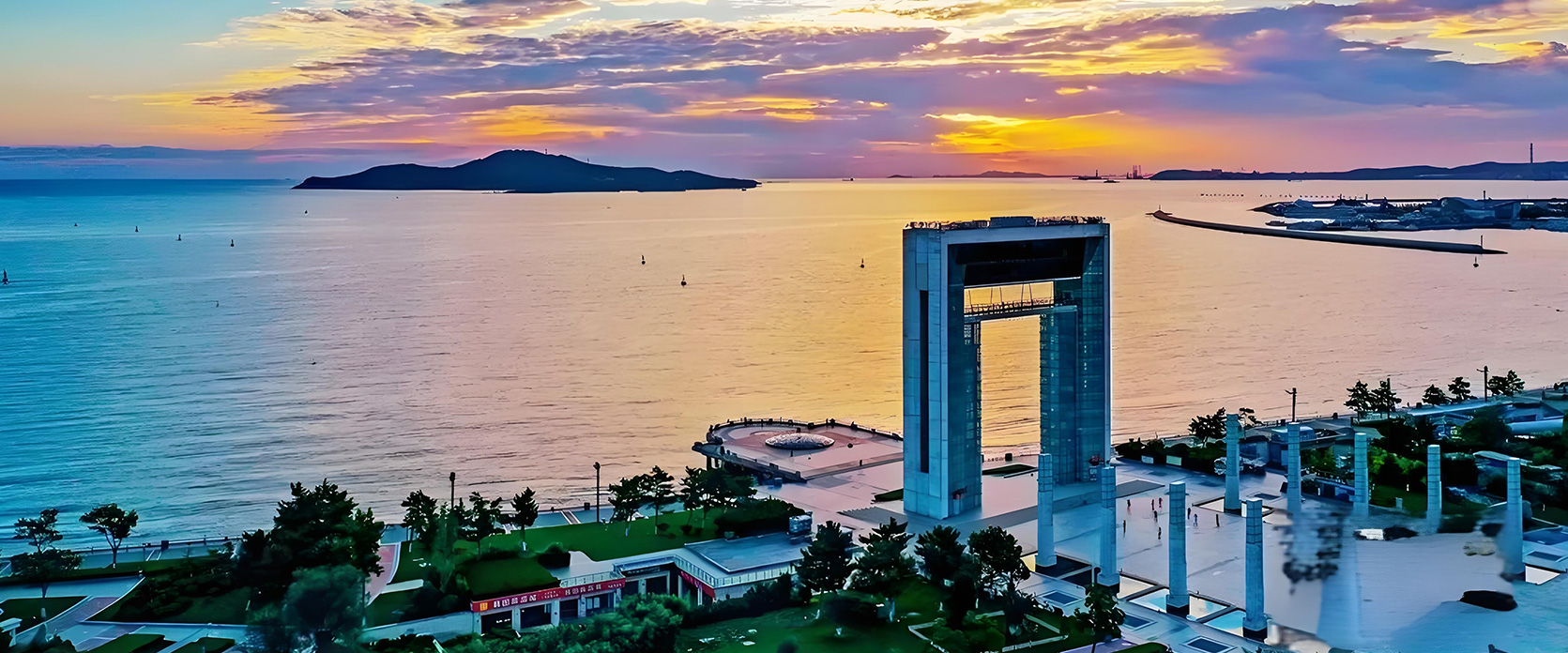 乘車前往“現代花園城市”威海(約 2.5 小時),外觀【幸福門】:這裡是威海千公里幸福海岸線的起點,岸邊矗立的幸福門被譽為“威海之門”,是威海標誌性建築,蘊含著“打開幸福之 門,迎接美好明天”的美好寓意。
