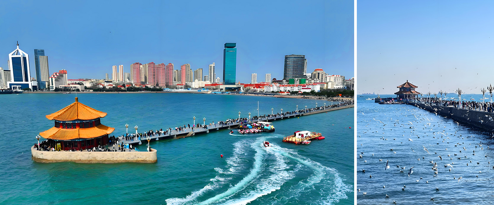 遊覽青島的象徵【棧橋】(約 1 小時):棧橋是一條長 440 米的海上長廊,從陸地延伸入海中,橫臥於青島灣,漫步棧橋,可欣賞 “長虹遠引、飛閣回瀾”。